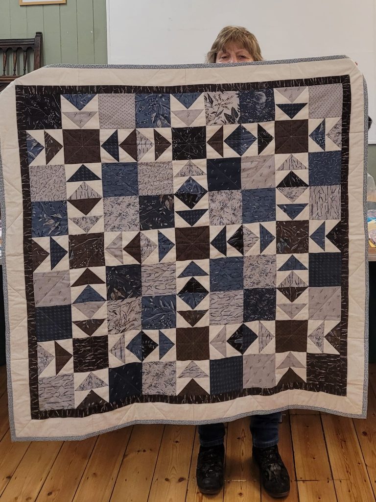 Beautiful quilt made from fabric won in last year’s raffle by Linda C. June 25